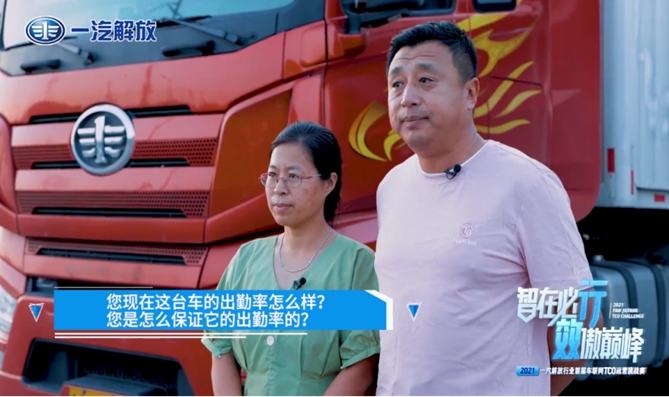 预赛期间,冯秋影夫妇俩驾驶的解放J7出勤率百分之百。每轮月度排名,二人都取得相当稳健的成绩,接连赢得厂家送出的车模、车载冰箱等奖品。面对镜头,冯秋影总结夫妻二人的参赛经验时,她说:“控制油门开合是关键。拉轻货时平均油耗达到24L,拉重货时油耗在30L左右,利用装货、卸货的间隙进行车辆维护保养。”