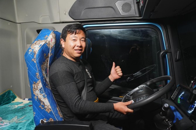 对常年以车为业的卡友而言,卡车从来不止是冰冷的运输工具,对韩师傅来说,兼具高效节能与舒适配置的欧曼银河5M纯电重卡更是自己路上的移动小家。每天大部分时间都在车里度过,车辆的空间和舒适性,直接决定了他的驾乘体验。“我天天在车上待着,空间和密封性太重要了,而这台车设计,真的满足了我的所有需求,比我之前开的任何一辆车都好。”