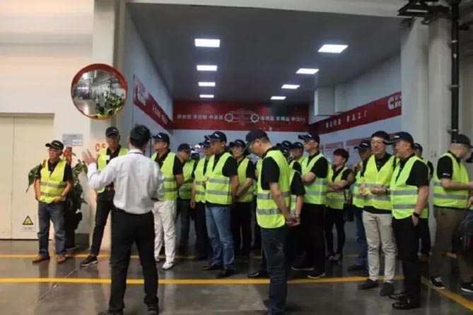 考察团首先参观了陕汽康明斯,接下来参观了车身厂、总装厂等重要的生产环节。陕汽重卡相关负责人介绍,重卡产品需求确认并进入生产流程后,经车身冲压、焊接、涂装等流程后,再进入总装车间,完成下线。