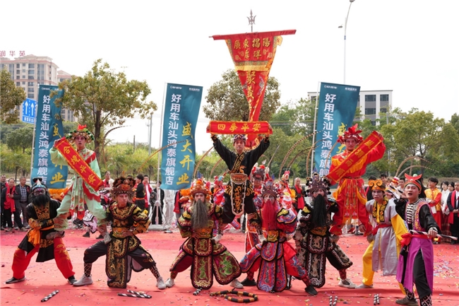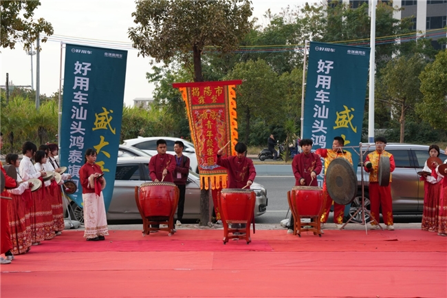开业喜悦以最具潮汕特色的方式延续。气势雄浑的英歌舞表演,以阳刚舞姿展现了力量与秩序,寓意品牌服务保障的可靠与高效。在激昂的锣鼓声中,隆重的交车仪式举行,首批新车钥匙被交付到客户手中,完成了服务承诺的第一次实地兑现。