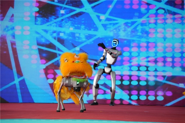 庆典的视觉与寓意高潮层层迭起。先是充满未来感的机器人矩阵表演,以精准舞步诠释智能服务的科技内核。紧接着,最为隆重的双狮点睛仪式在王总、江总执笔下完成,朱砂一点,醒狮顿生灵气,象征品牌被赋予蓬勃生命与远大前程。