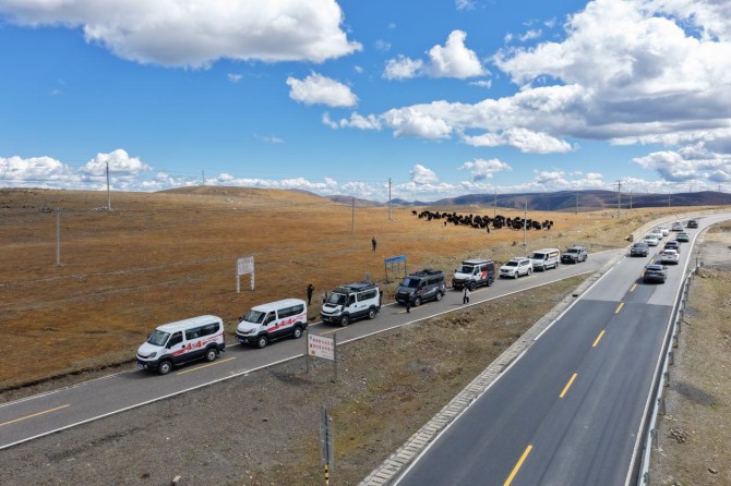 在《康定情歌》的悠扬旋律中,六辆依维柯欧霸·山海越野车如钢铁雄狮般列队启程。车队自新都桥镇启程,经天路十八弯、铁匠山、纳海、则巴村,全程总计约400公里,涵盖柏油路面、连续下坡山路S弯道、涉水路段等复杂路况,依维柯欧霸·山海亦将以全方位的卓越性能,全程展现专业越野的硬派实力。