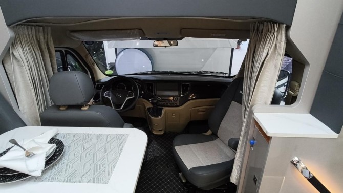 内饰空间设计兼顾实用性与舒适性,整车配备142L房车专用大容量冰箱,可长期储备生鲜食材、饮品零食,户外生活也能尽享新鲜美味;车内打造一体化餐厨区,集成吸油烟机、隐藏式洗菜盆、多功能控制区,搭配丰富储物柜与置物架,让户外生活告别杂乱,便捷有序。空间灵活性方面,车型采用一物两用的会客卡座设计,白天可作为休闲交流、办公创作、间,夜晚通过伸缩扩展即可变身舒适大床,收纳不占额外空间,兼顾休闲、住宿、储物多重功能,完美适配情侣出行、家庭旅居、好友结伴等多场景需求。