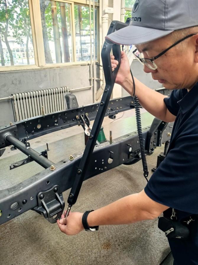 为保障产品一致性和可靠性,北汽福田成立生产专项小组,率先打造首台 “Master Car 样车”,由研发、制造、质检团队联合锁定标准,确保后续车辆全部对照样车生产,全面保证产品一致性。