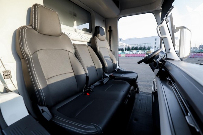 在舒适体验上,欧马可Z采用行业首创一级踏步,离地高度470mm,大幅缩短登车距离,减轻驾驶员每日频繁上下车带来的身体劳损。搭配MPV坐姿设计、全平地板以及270L超大储物空间,可为司机营造一个宽敞舒适的“家空间”。同时车辆还标配Auto Hold智能制动功能,让车辆启停顿挫感降至最低,平稳启停不仅能保护货物品质,还能减轻频繁装卸带来的驾驶负担,给予用户更舒适的驾乘体验。