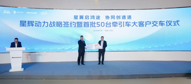 实现物流提质升级“开门红”,北汽福田欧曼星辉动力首批50台牵引车正式交付
